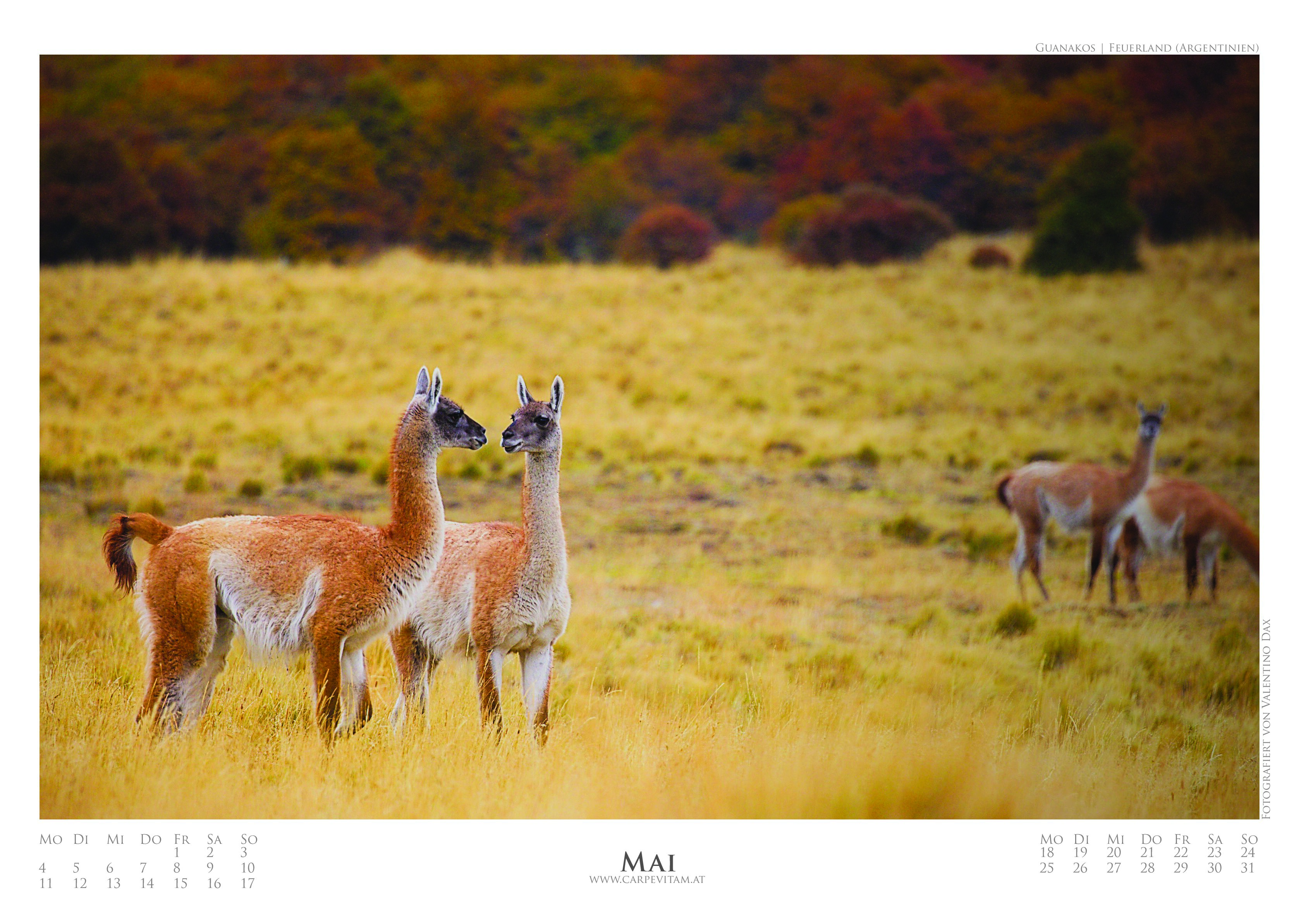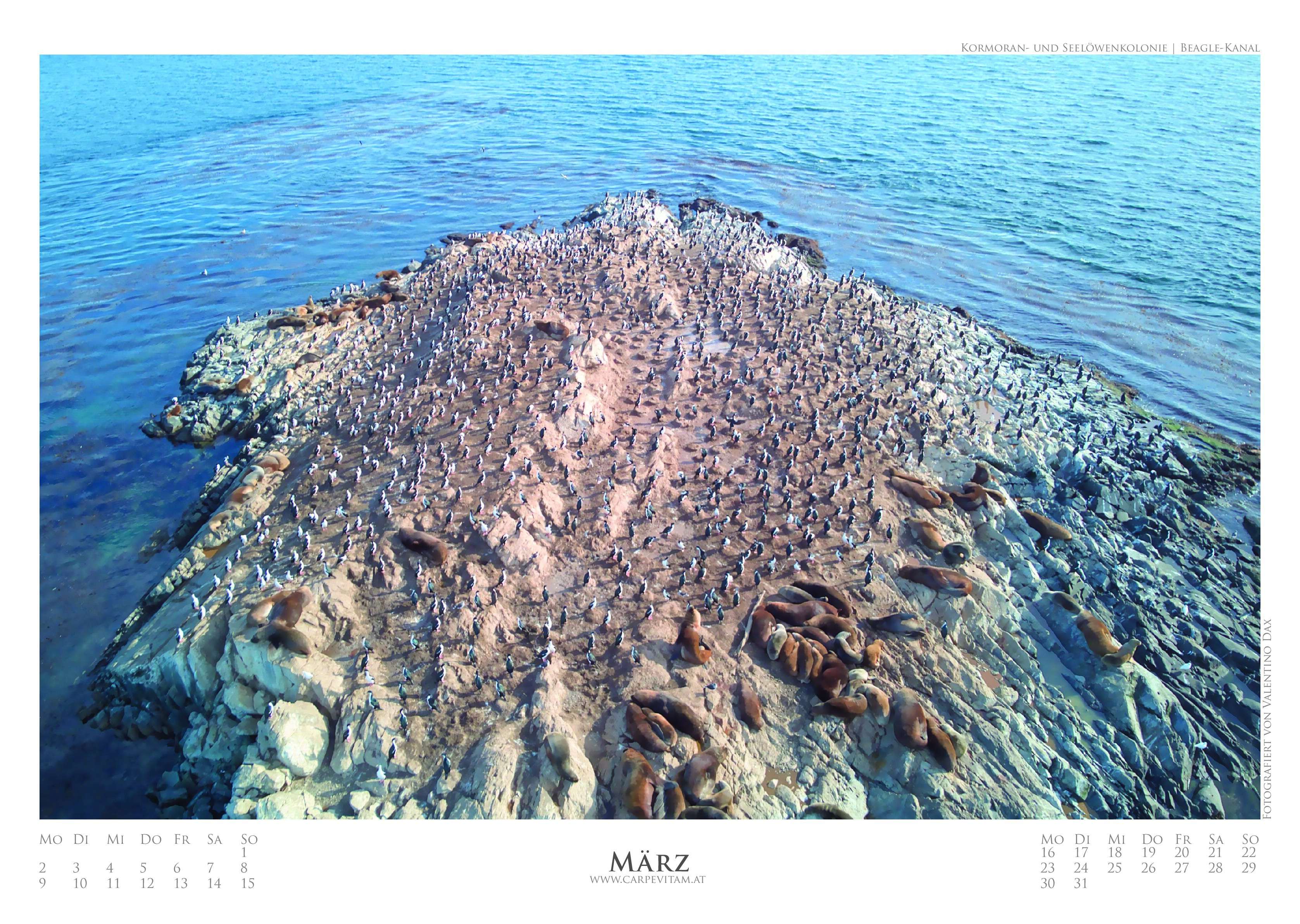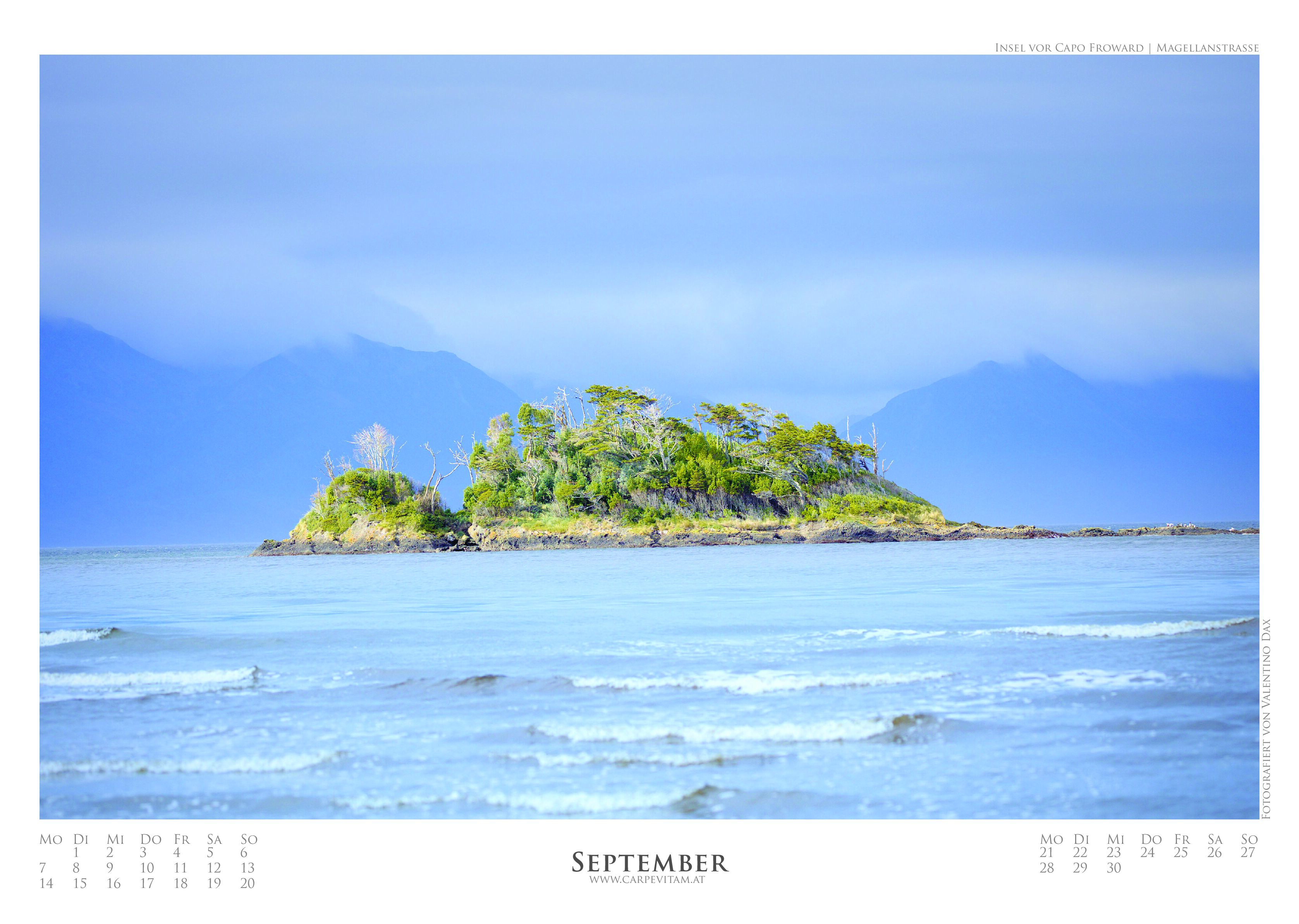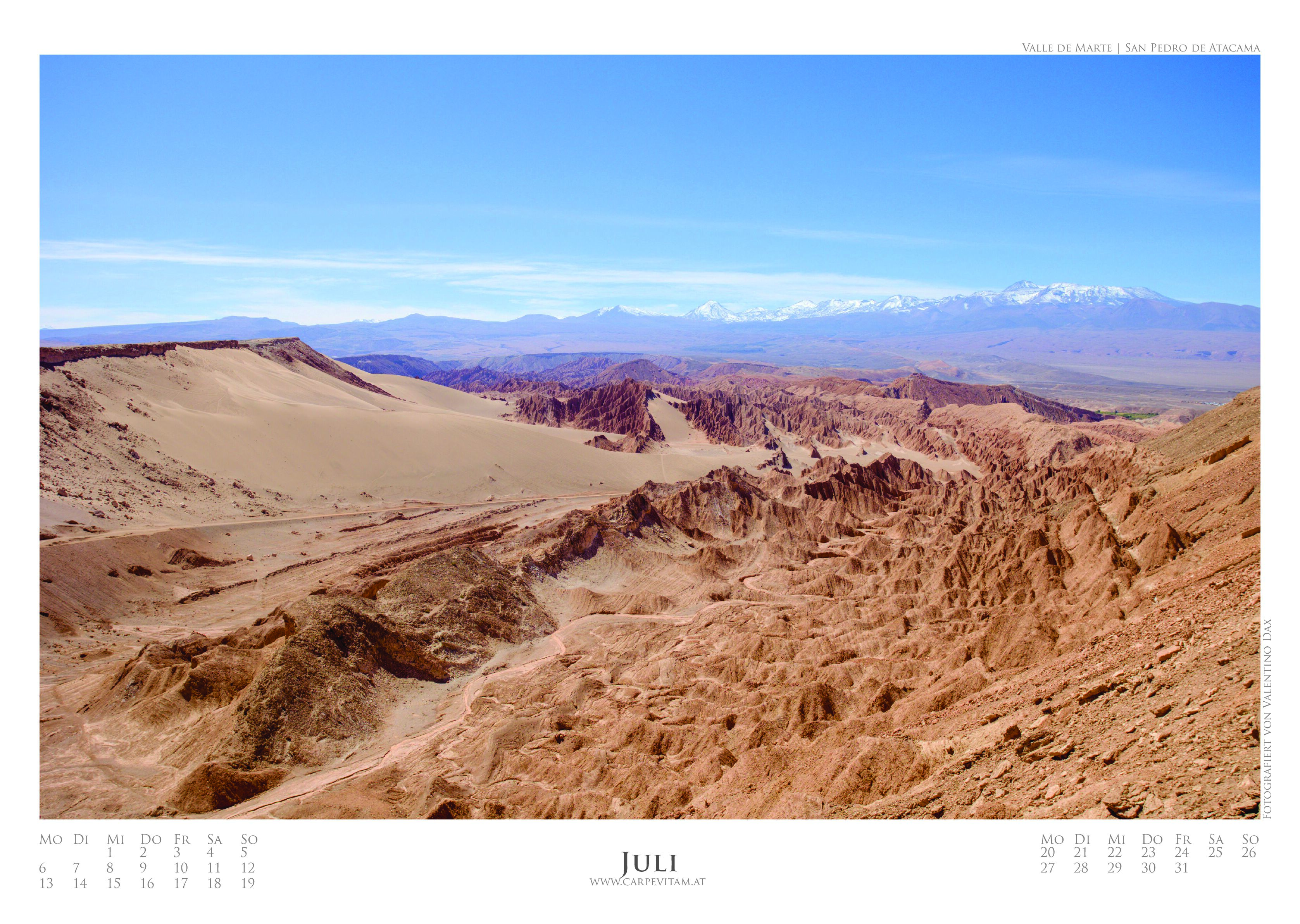 Puerto Williams, das südlichste Dorf am Ende der Welt, liegt am Fuße der Zacken der Dientes del Navarino – südlicher liegen nur Kap Horn und die Antarktis. Auf der anderen Seite trennt der artenreiche Beagle-Kanal die Isla Navarino von den Steppen Feuerlands. Jenseits der Magellanstraße ragen die Granittürme der Torres del Paine in den blauen Himmel, und im Norden des längsten Lands der Welt erheben sich bizarre Sandsteinformationen und die Überreste vulkanischer Aktivitäten aus dem Wüstenboden der Atacama. Mit dem carpevitam-Kalender 2026 geht es nach Chile, ans andere Ende der Welt, in ein Land zwischen Ozeanen, Vulkanen, Eis und Wüste. Der Kalender im A3-Format ist ab sofort für EUR 17,– bestellbar.